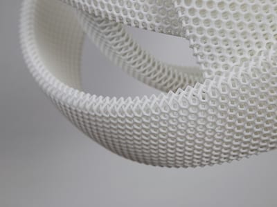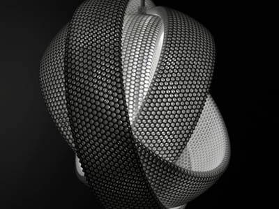 The combination of nature and industry raises the questions of evolution and revolution, for Johnston two ideas closely intertwined. They are visually articulated through the work of Bram Geenen, whose technically advanced furniture designs, (famously the Gaudí chair) take as their source the parabolic curve. He suspends chains across two supports, naturally creating the curve which he then replicates in his furniture designs. This technique was used by Antoni Gaudí to create organic, curvilinear buildings, but Geenen utilises it alongside modern technology. Using the laser-sintering technique and carbon fibre he creates a sleek high-quality product that uses the minimal amount of material required for maximum strength.