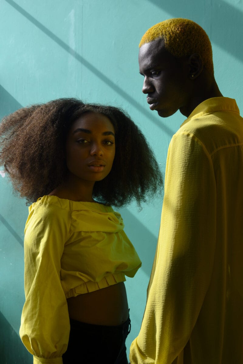 Yannis Davy Guibinga’s (b. 1995) bold portraits are part of an expansive and necessary conversation about the representation of Africa and its diaspora. The work depicts “a new generation of Africans” – using photography as a tool to face up to globalisation and western imperialism. Guibinga explores a breadth of cultures and identities whilst tackling biased or limited perspectives of the continent and its diverse communities. To do so, the photographer uses colour and contrast intuitively. Aqua complements luminous yellow, whilst pillar-box red, blush pink, vivid orange and deep indigo draw the eye into a scintillating spectrum of forms and ideas. Though minimal in composition, bed sheets, flowing clothes and painted concrete subtly play with texture in the background. Originally from Libreville, Gabon, Guibinga is currently based in Montréal, Canada. He has been featured in CNN Africa, i-D, Afropunk and Condé Nast Traveller.