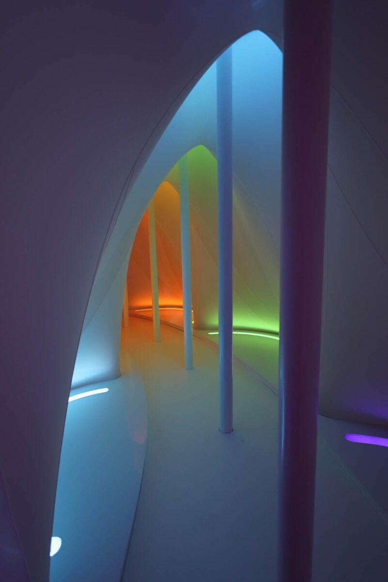 5. Spectrum. An Afterthought, (1975–2014). Synthetic fabric, neon lamps, colored filters, steel, aluminum, plywood, plastic. 400 x 1056 x 539 cm. The Lithuanian National Museum of Art. Photo by Antanas Lukšėnas