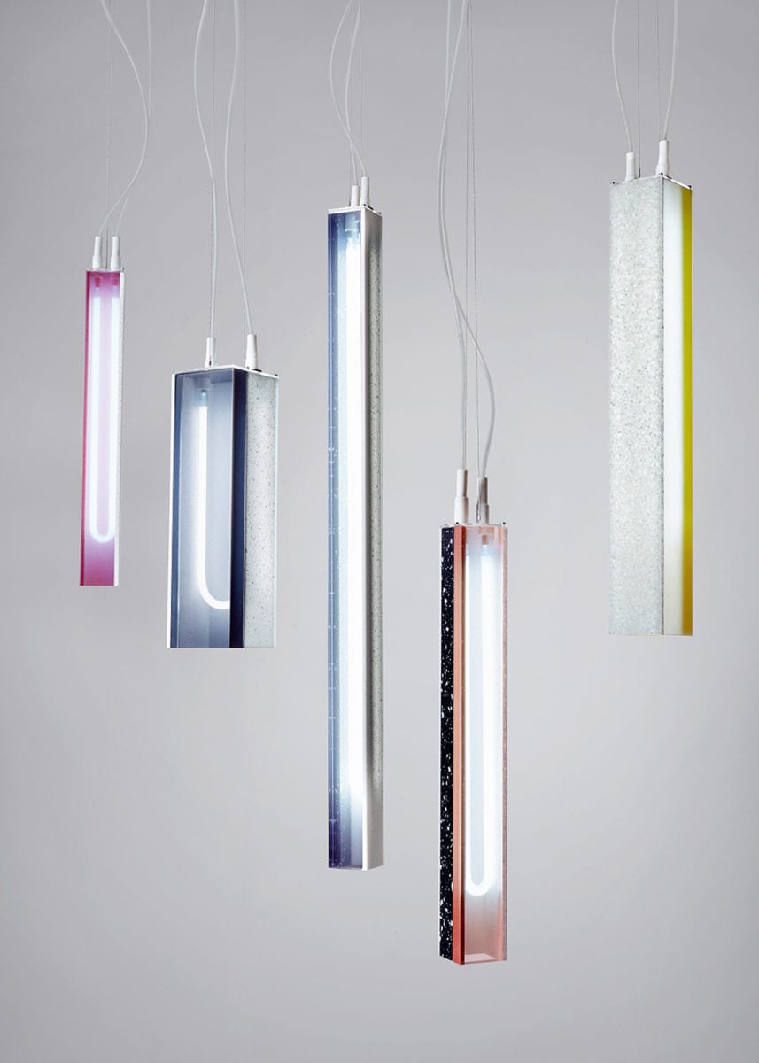 Expansive – the final section – investigates less obvious yet fundamental elements like air, light and water. Whilst “light is not something most of us immediately recognise as a material,” Solanki states, some of the most amazing concepts in the book utilise it in its own right, addressing the ways it is perceived and experienced. This is something that has often been investigated in visual arts – through the likes of James Turrell’s Skyspaces and Olafur Eliasson’s various public projects – but in this case, light is considered for its impact on wellbeing. Rotterdam-based Sabine Marcelis, who runs a studio for installation and object design, manipulates light paths to affect surrounding spaces. VOIE, for example, is a collection of cast-polyester-resin pieces in various shapes and wide spectrum of colours, which are lit through. The resin’s properties allow the light to diffuse in many ways, thus creating extraordinary visual effects, which enhance the various hues. It seems to confirm the designer’s statement, which reads: “Forever in search of magical moments within manufacturing processes to create unexpected experiences.” Not only can the final result be adjusted to the needs of the space, but also Marcelis’ designs work to co-create it, as light circulates across the space and is subsequently reflected in multiple directions.