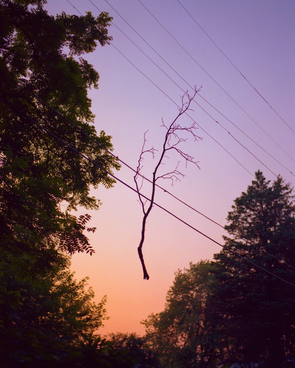 Over the years, numerous photographers have focused on the banal beauty of the American suburbs, from the likes of Todd Hido and Angela Strassheim to Gregory Crewdson and Greg Girard, each producing visions of white-picket fences, winding roads and drawn curtains. Thomas Jordan (b. 1992), a self-taught photographer based in Chicago, Illinois, is rejuvenating the genre. These analogue works conjure, as the series title suggests, an immediate impression of summer. Instant Honey provides a glimpse of the Midwest at twilight – warm, rural and isolated. Lilacs blend into burnt oranges and inky blues, the days closing into one another endlessly. Windows glow from the distance whilst pylons tangle with broken branches, basketball hoops and roof tiles. Each composition is brief and evocative, building dramatic land- scapes that teeter, always, between light and shadow. thomasjordanphoto.com.