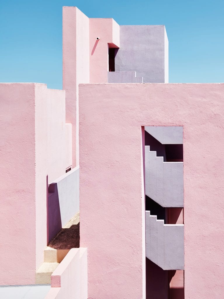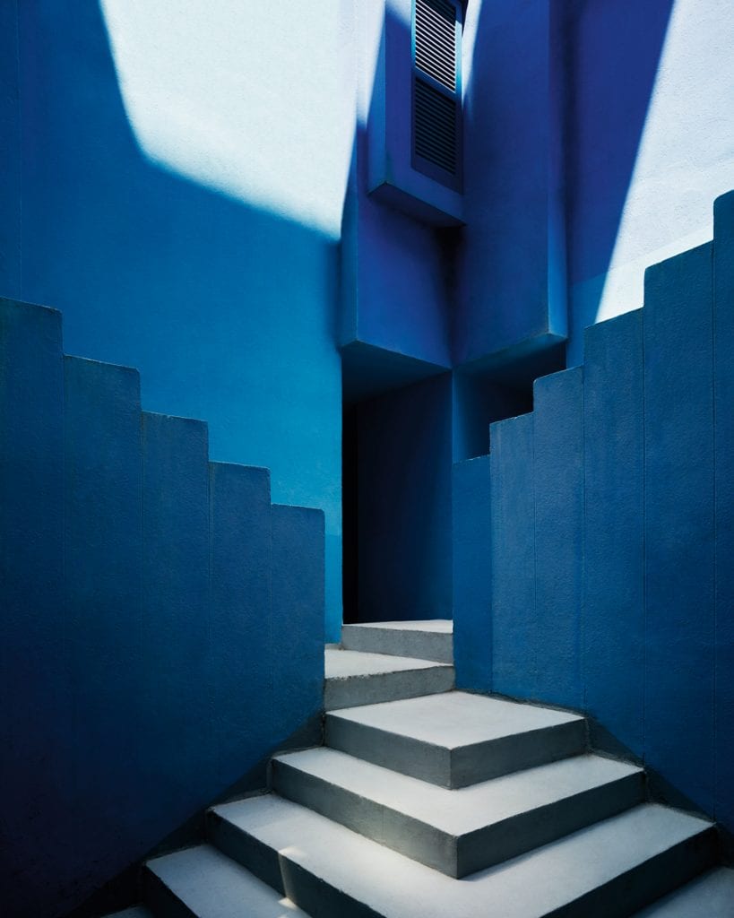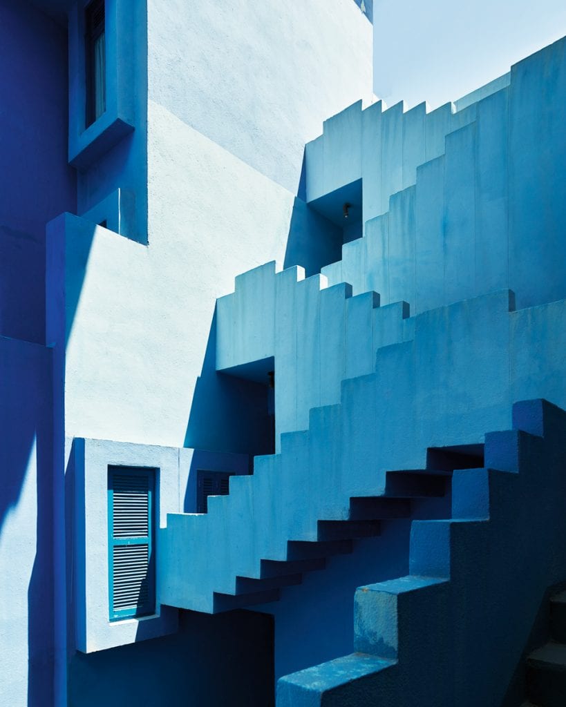 Spanish architect Ricardo Bofill (b. 1939) launched an international urban design firm in 1963, which to date has completed over 1,000 projects in 40 countries. Given its wealth of activity, from public infrastructure to interior product design, the Barcelona-based practice has credits belonging to Dior, Rochas and Cartier as well as for Parisian social housing and Tokyo skyscrapers. In 1973 Bofill headed the design for La Muralla Roja (The Red Wall) in Calpe, Alicante, which pays homage to the Arab Mediterranean, in particular to the adobe towers of North Africa. Evoking a constructivist aesthetic, interconnected patios pay attention to colour as a misleading element. Intense hues of reds and blues contrast with the interplay of sunlight whilst blocks of labyrinthine staircases create a stimulating experience where space is subjective at each unique viewpoint. The result is an alluring geometric playground. www.ricardobofill.com.