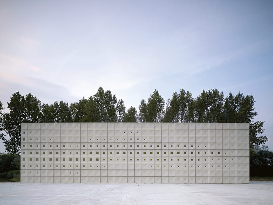 Similar to the fears associated with many recent technological developments, Gulling acknowledges the valid concern that the more computer-aided elements practitioners incorporate into their plans, the more sterile, uniform and uninspired the work may appear. However, she strongly emphasises the notion that CAM applications can minimise construction cost and waste without sacrificing creativity and originality. As illustrated through KAAN Architecten’s concrete crematorium in Sint-Niklaas, Belgium, the use of computer-aided components still leaves ample room for the conception and production of bespoke elements by local artisans and craftspeople who can infuse a distinctive sense of place and history into the building. Inspired by Frank Lloyd Wright’s series of four textile houses that are each adorned with ornately carved concrete blocks, the Netherlands-based firm enlisted SVK – a Belgian precast concrete producer – to create a suite of square cassette tiles to ornament the exterior of the colossal construction. This manufacturer won the project bid despite having never produced any architectural products before (previously, the company had specialised in pressing glass to make ashtrays). Surprisingly, SVK was able to apply the same innovative process used in the glass pressing to fabricate these textured tiles.