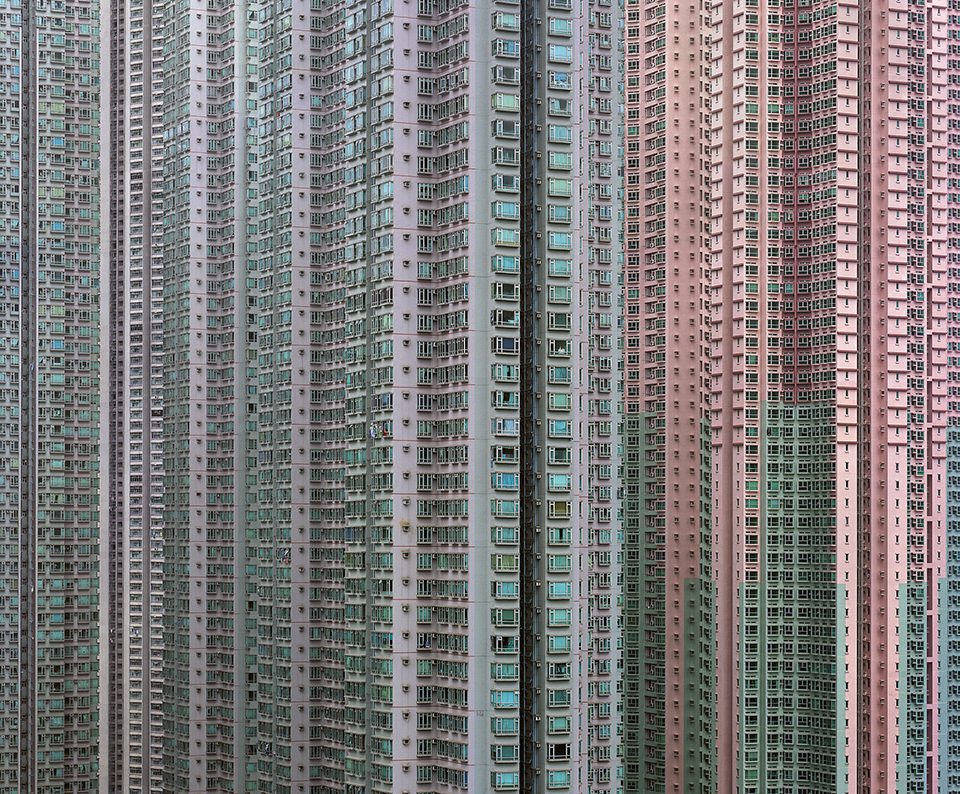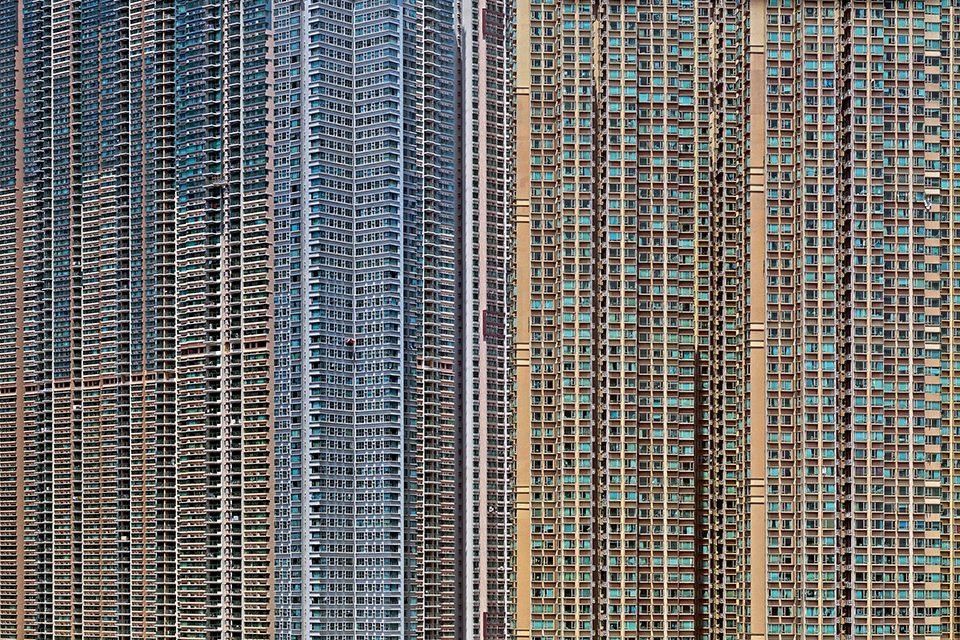 German photographer Michael Wolf (1954-2019) documented and marveled at the vernacular culture of the modern metropolis. Architecture of Density is a sprawling collection of colossal structures that can be found in Hong Kong. Charting the excessive repetition of rooms and blank windows, the photographs turn housing into a world of disillusioned abstraction. Devoid of landscape, the recognisable semantics of buildings are forgotten: concrete can be a material that consciously reproduces patterns organically and without limitation. Through cropping, he presents a different perspective of architecture as an entity that is free-flowing. Cities can continue to move in our imaginations as we attempt to visualise the size of them outside of the borders of the image. Wolf’s work has been exhibited at a number of locations including the Venice Biennale, the São Paulo Biennial for Architecture, Aperture Foundation, and MCA Chicago. www.photomichaelwolf.com.