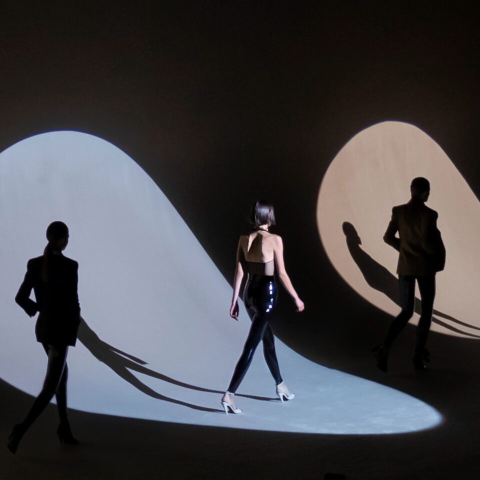5. Key Visual »CatwaIk: The Art of the Fashion Show« © Vitra Design Museum, graphic design: Haller Brun. based on © Bureau Betak, photo Marie Laure Dutel, Yves Saint Laurent, Autumn/Winter 2020.