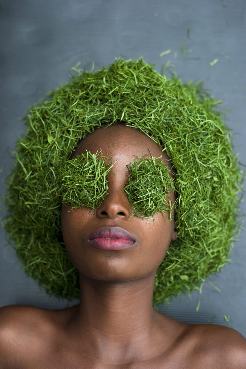 His images showcase Congolese traditions and history, reframing them in playful portraits. Madia ya Bwala highlights the indigenous plants and food of the Republic of Congo. The artist says: “With the rise of the fast-food industry across the globe and especially Africa, there has never been a better time to emphasise the benefit of local food and how the food of our home country always speaks to us.” The pictures feature figures bathed in fruit, seeds and leaves. Vibrant greens and rich red create an enticing picture. Nzaou continues: “The project hopefully also serves to draw attention to the face that restaurants and hotels in Congo are serving less and less indigenous dishes, and so are indirectly implying that these are somehow below par on the international scene.”